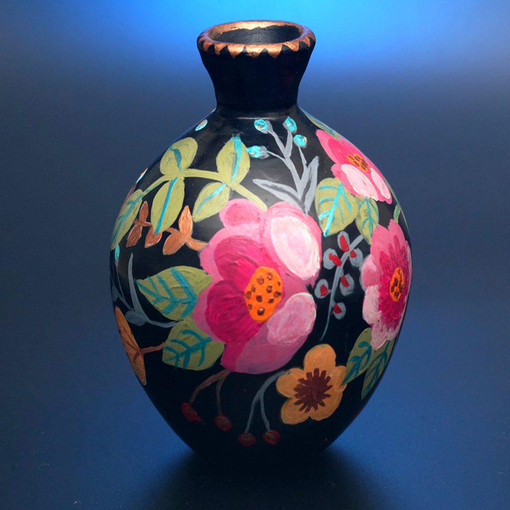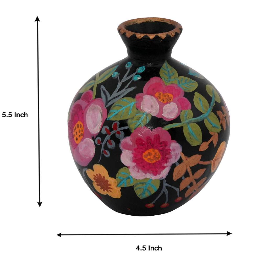 As this product is handcrafted there might be a slight color, shape, or design variation, which is natural and hence makes the product unique. A beautifully handcrafted terracotta vase in unique matki shape, hand painted in a classic combination of black and white which has warli art painted all over it. The girls are celebrating and dancing in different poses. Beautiful painting has been done across the neck.