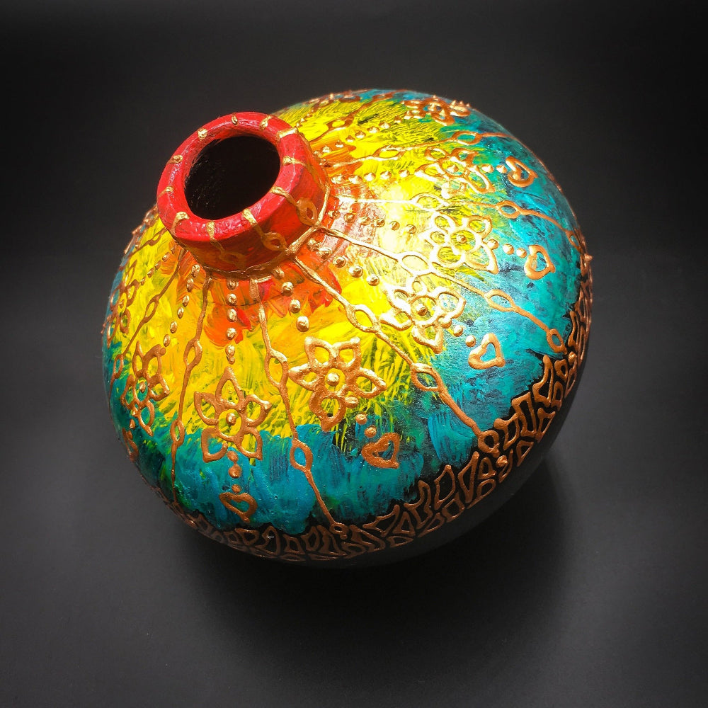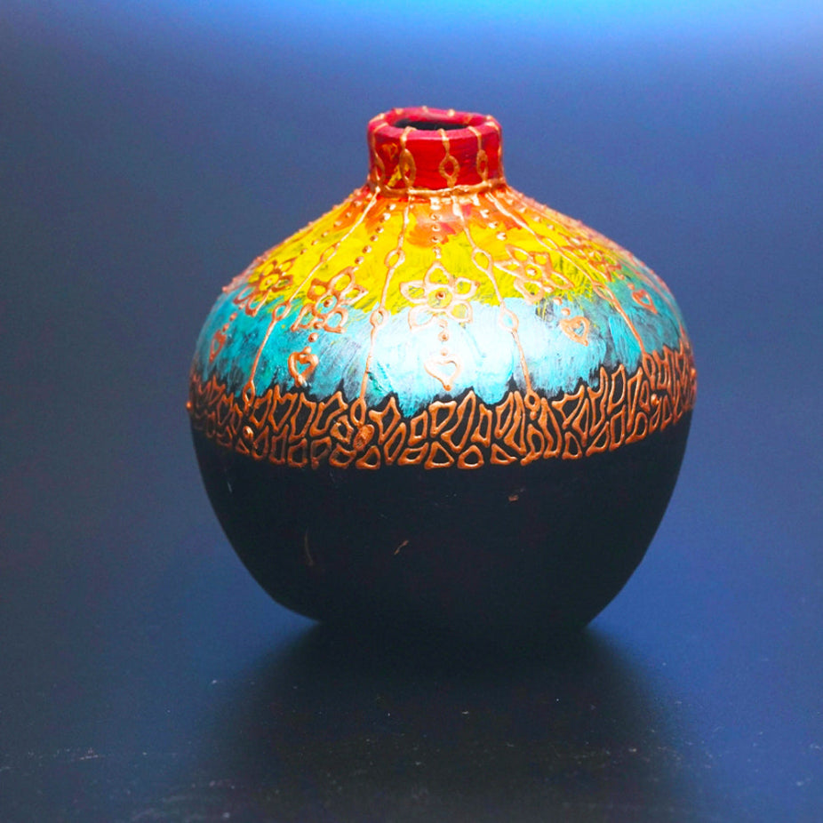 Hand Painted Rainbow Terracotta Vase 4 Inch