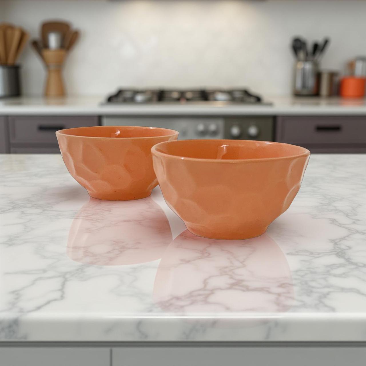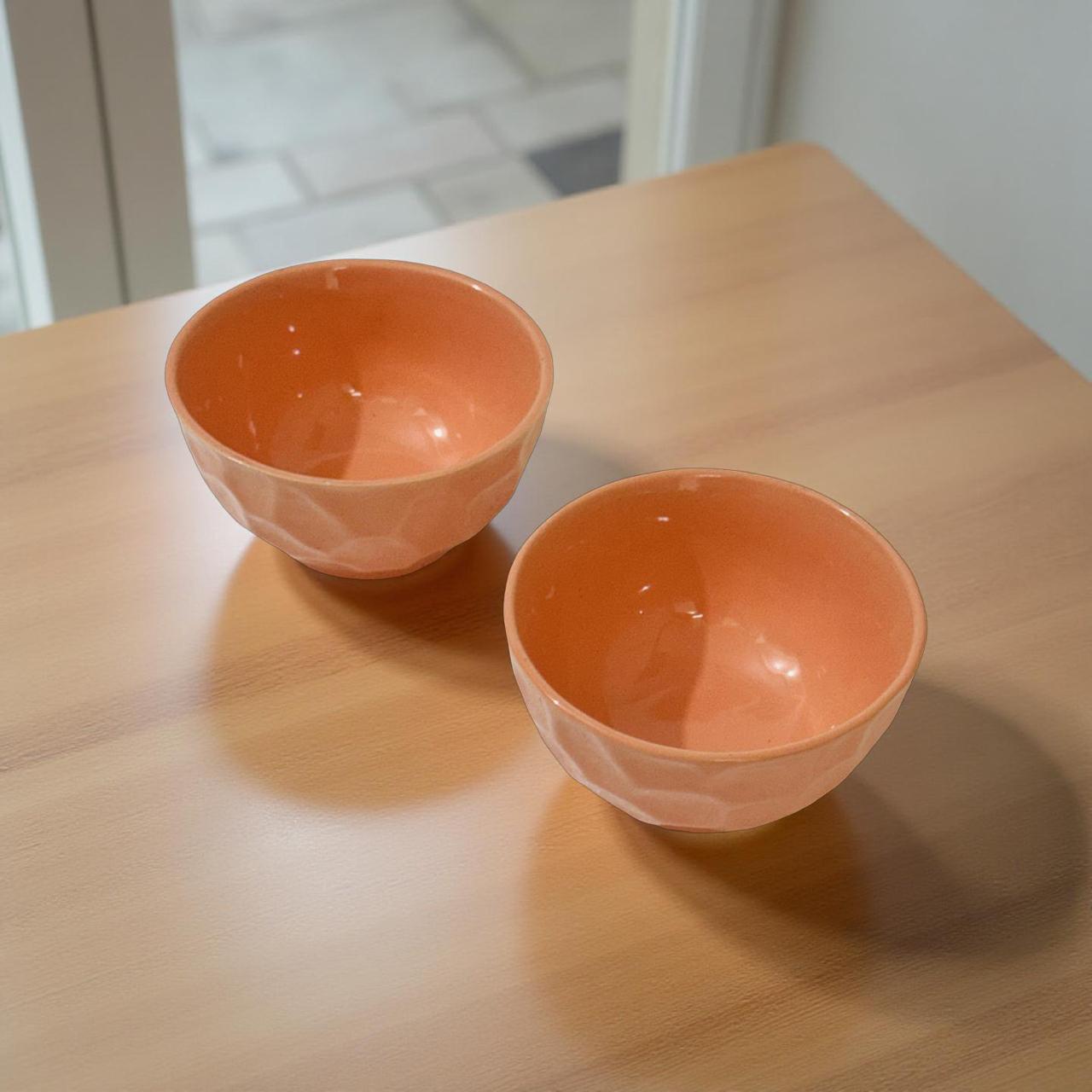 Brighten up your daily meals with this handcrafted set of 2 peach ceramic bowls. Featuring a textured matte-gloss finish, they’re perfect for serving snacks, soups, chutneys, dips or desserts in style. Minimal, modern & made for Indian homes.
