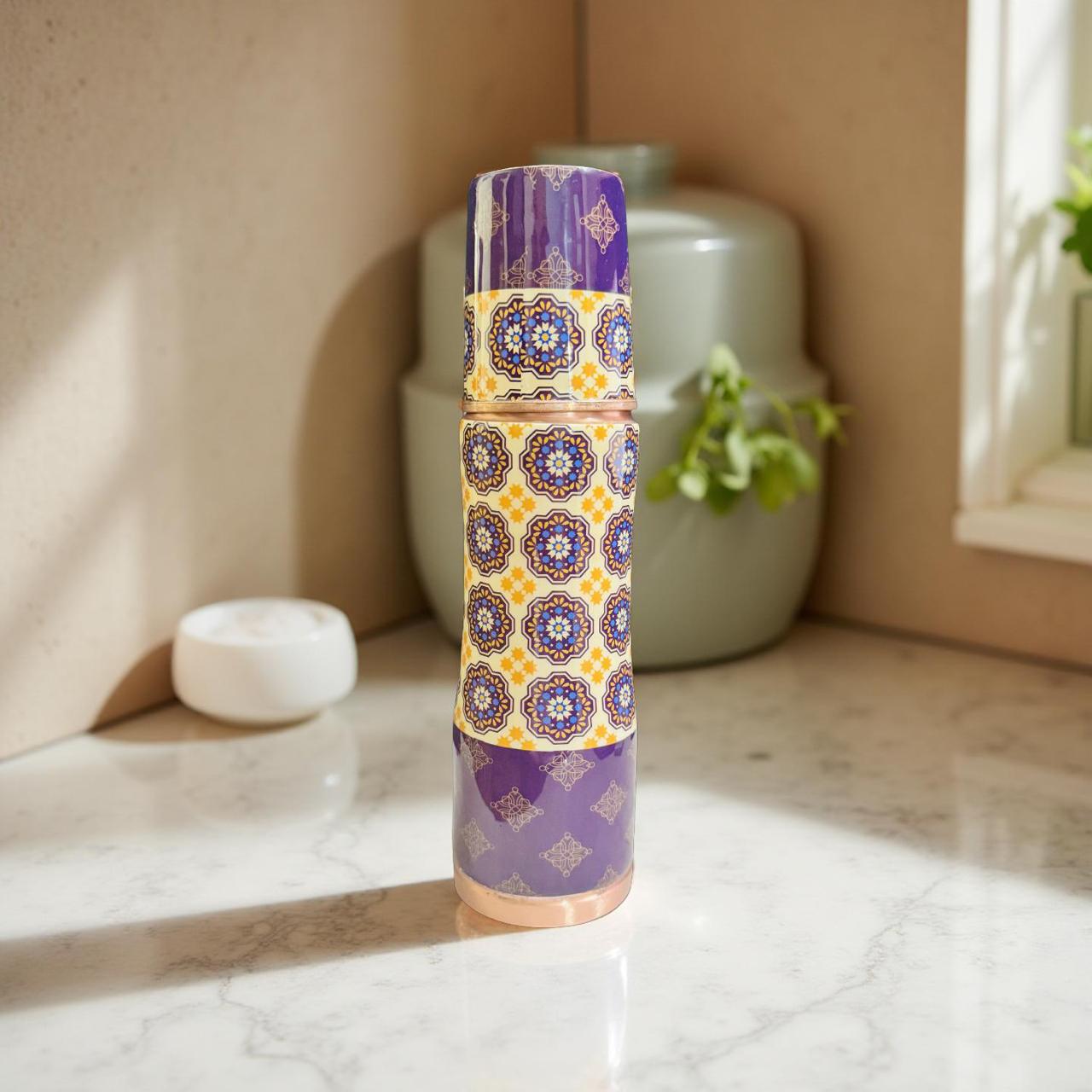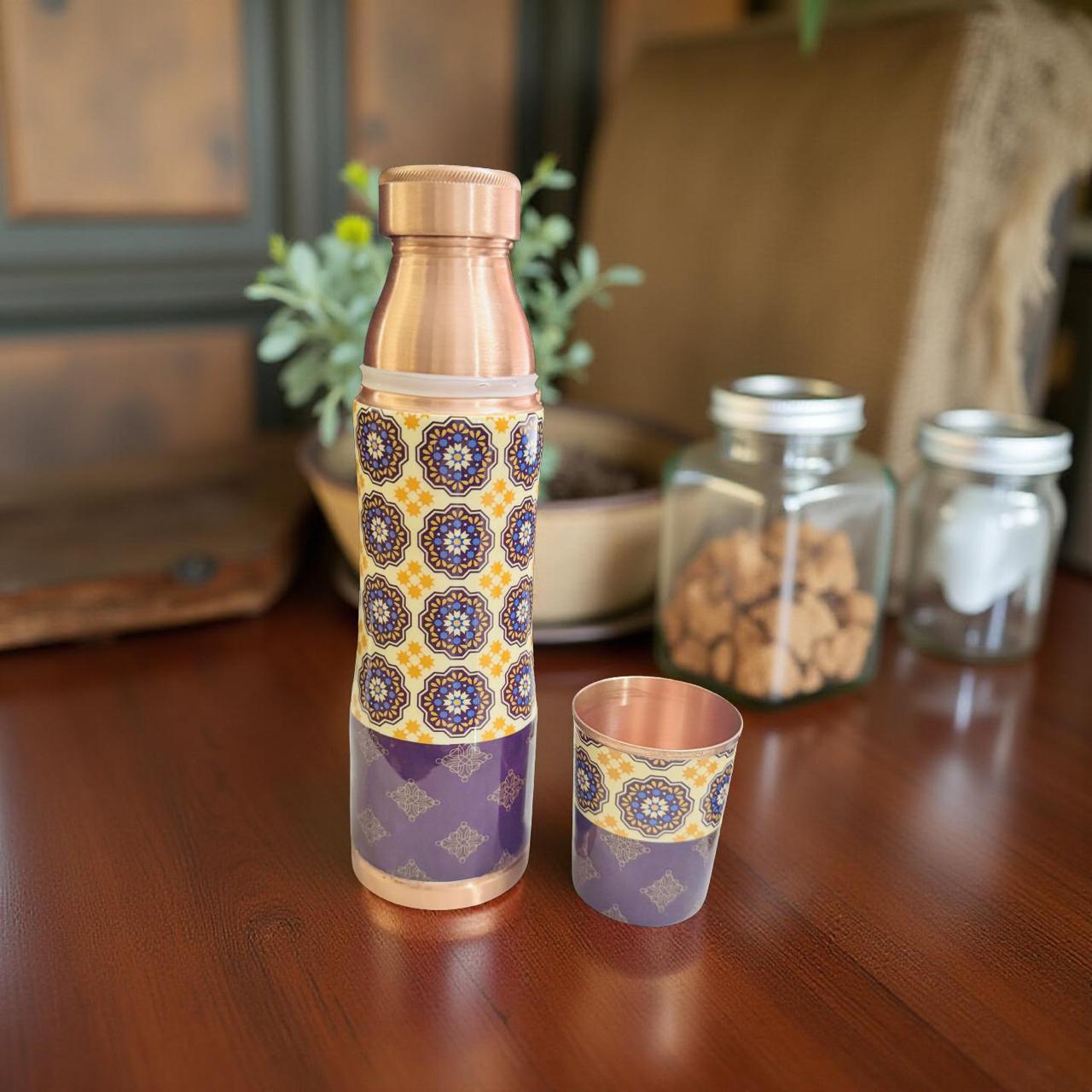 Printed Copper Bottle with Glass | Traditional Wellness Gift Set